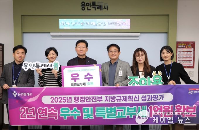 (케이엠뉴스) 용인특례시는 지난해에 이어 ‘지방규제혁신 성과평가’에서 우수 기관으로 선정돼 특별교부세 1억 원을 확보했다고 16일 밝혔다.