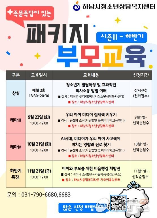 (케이엠뉴스) 하남시는 부모와 보호자의 높은 호응 속에 마무리된 상반기 교육에 이어, 2025년 패키지 부모교육 시즌Ⅲ 하반기 과정을 본격 운영한다고 밝혔다.