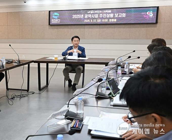 (케이엠뉴스) 의정부시는 8월 22일 시청 회룡홀에서 공약사업 담당 부서장 등이 참석한 가운데 ‘2025년 공약사업 추진상황 보고회’를 개최했다.