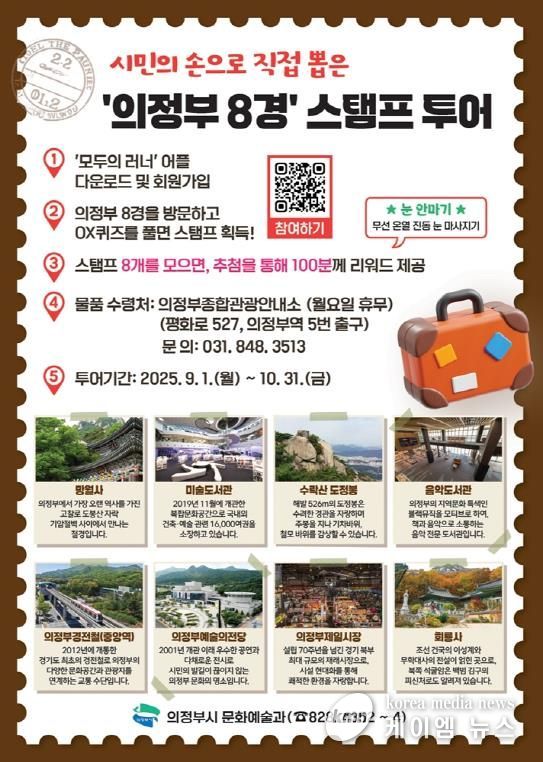 (케이엠뉴스) 의정부시는 9월 1일부터 10월 31일까지 2025년 하반기 ‘의정부8경 스탬프투어’를 개최해 시민과 관광객을 맞이한다.