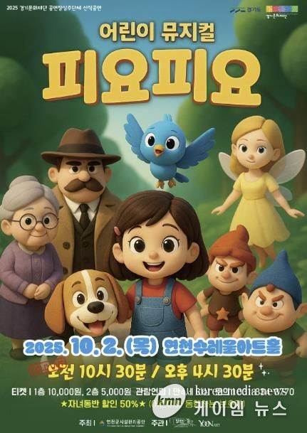 (케이엠뉴스) 연천수레울아트홀은 2025년 10월 2일 오전 10시 30분과 오후 4시 30분, 대공연장에서 어린이 뮤지컬 〈피요피요〉를 선보인다.