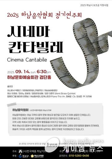 (케이엠뉴스) 하남시 음악인들이 영화 속 감동을 무대 위 선율로 풀어내는 '2025 하남음악협회 정기연주회 – 시네마 칸타빌레 (Cinema Cantabile)' 가 오는 9월14일 오후 6시 30분, 하남문화예술회관 검단홀에서 개최된다.