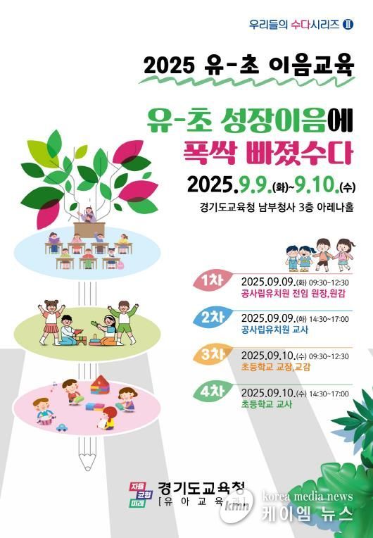 (케이엠뉴스) 경기도교육청이 9일과 10일 남부청사에서 ‘유-초 성장이음’을 주제로 ‘2025 유-초 이음교육’ 맞춤형 연수를 개최한다.