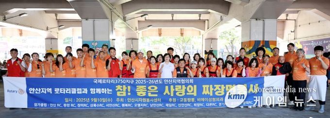 (케이엠뉴스) “온기나눔으로 하나되는 대한민국” 물결운동을 펼치고 있는 안산시(시장 이민근)와 발맞춰, 안산지역로타리협의회(김성미 회장)는 9월 10일 이동밥차 무료급식에 쌀 300kg, 짜장면 식재료&재능나눔(교동짬뽕), 빵.음료 600인분(비에이성형외과) 후원과 함께 관내 65세 이상 어르신 및 소외계층들을 위해 짜장면 600인분을 안산지역로타리협의회(안산RC, 중앙RC, 장미RC, 상록수RC, 서안산RC, 행복RC, 오엘지RC, 남안산RC, 제일RC, 신안산RC, 희망RC, 다온RC, 경기RC, 공단RC, 광덕RC) 회원들이 직접 만들어 자원봉사자들과 함께 상록수역광장에서 ‘짜장면 대접’으로 무료급식을 진행했다.