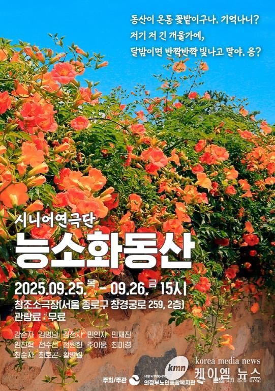 (케이엠뉴스) 의정부시는 9월 25일부터 26일까지 서울 대학로 창조소극장에서 의정부노인종합복지관(관장 최종록) 연극동아리가 작품 ‘능소화동산’을 선보인다고 밝혔다.