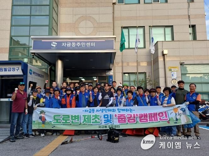 (케이엠뉴스) 의정부시 자금동주민센터는 9월 15일 자금동 통장협의회와 지역 주민 50여 명이 함께 주민센터 및 천보로와 금신로 일대에서 도로변 제초와 쓰레기 ‘줍깅’ 캠페인을 실시했다고 밝혔다.
