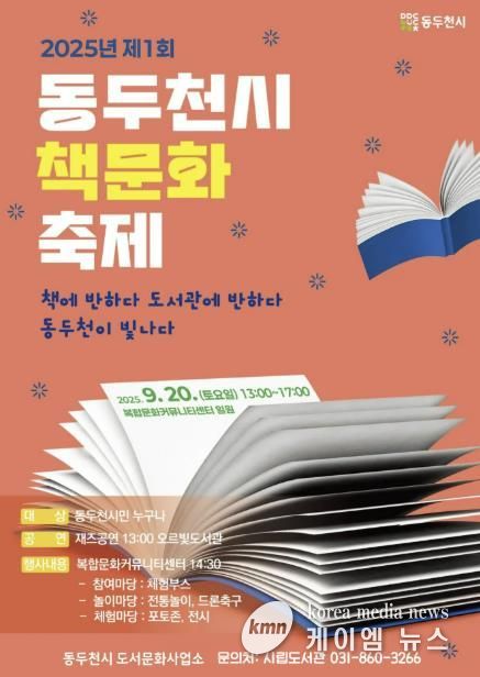 (케이엠뉴스) 동두천시는 지역 주민의 독서문화 확산과 독서 생활화를 위해 9월 20일 복합문화커뮤니티센터에서 ‘제1회 동두천시 책문화축제’를 개최한다고 밝혔다.