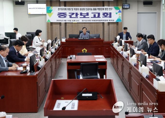 (케이엠뉴스) 경기도의회 미래과학협력위원회는 9월 15일, 경기도의회 위원회 회의실에서 『경기도의회 의원 및 직원의 생성형 인공지능 활용 역량강화 방안 연구』에 대한 중간보고회를 개최했다.