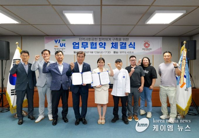 (케이엠뉴스) 양주도시공사는 9월 12일, 지역 봉사단체인 ‘양주사랑도너츠’와 지역사회공헌 협력체계 구축을 위한 업무협약(MOU)을 체결했다고 밝혔다.