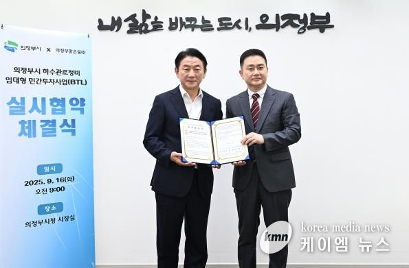 (케이엠뉴스) 의정부시는 9월 16일 의정부맑은물주식회사와 ‘하수관로정비 임대형 민간투자사업(BTL)’에 대한 실시협약을 체결했다.