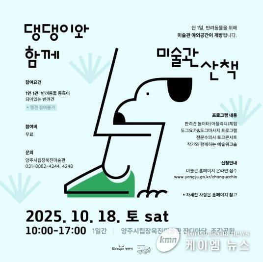 (케이엠뉴스) 양주시립장욱진미술관은 오는 10월 18일, 반려견과 함께하는 특별 프로그램 '댕댕이와 함께 미술관 산책'을 개최한다.