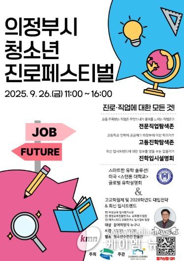 (케이엠뉴스) 의정부도시교육재단은 청소년 진로탐색을 지원하고 미래역량 강화를 돕기 위해 2025년 9월 26일 의정부시청소년수련관에서 '2025년 의정부시청소년진로페스티벌'을 개최한다.