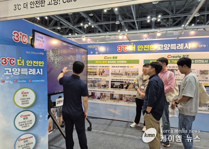 (케이엠뉴스) 고양특례시는 지난 17일 킨텍스에서 열린‘2025년 제11회 대한민국 안전산업박람회’에 참가해‘3℃ 더 안전한 고양특례시’를 슬로건으로 안전정책 홍보관을 운영하고, 디지털 정책플랫폼 시스템을 현장에서 선보였다고 밝혔다.