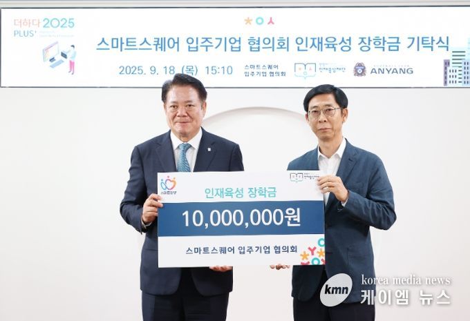(케이엠뉴스) 안양시 인재육성재단은 18일 스마트 스퀘어 입주기업 협의회로부터 1천만 원의 인재육성 장학금을 기탁받았다고 19일 밝혔다.