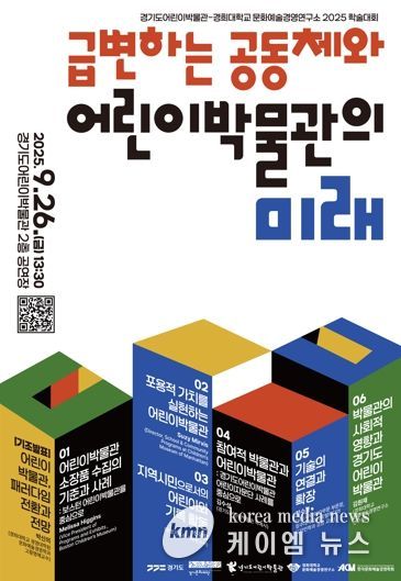 (케이엠뉴스) 경기문화재단 경기도어린이박물관은 개관 14주년을 기념하여 오는 9월 26일 오후 1시 30분, 박물관 2층 공연장에서 학술대회 ‘급변하는 공동체와 어린이박물관의 미래’를 개최한다. 이번 학술대회는 경희대학교 문화예술경영연구소와 협력하여 마련됐으며, 한국문화예술경영학회의 후원을 받는다.