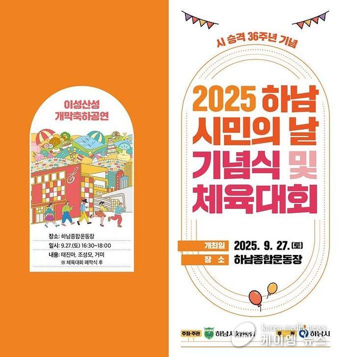 (케이엠뉴스) 하남시는 오는 9월 27일 하남종합운동장에서 ‘제36주년 하남시민의 날’을 맞아 기념식과 체육대회를 비롯한 다채로운 행사를 개최한다.