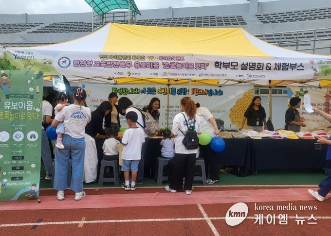 (케이엠뉴스) 경기도연천교육지원청은 9월 19일 10:00~15:00, 연천종합운동장에서 열린 YC아이조아랜드와 연계한'연천형 유보이음 초록놀이 한마당'을 성대히 개최했다. 이번 행사는 연천군육아종합지원센터와 연천군 어린이집연합회가 주관하고, 유보이음 공동교육과정 위탁대학인 경동대학교가 함께하여 학부모 대상 설명회 및 체험활동으로 진행됐다.