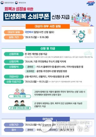 (케이엠뉴스) 양주시가 지역경제 활성화와 시민 생활 안정을 위한 2025년 2차 민생회복 소비쿠폰 신청 접수를 22일부터 시작한다.