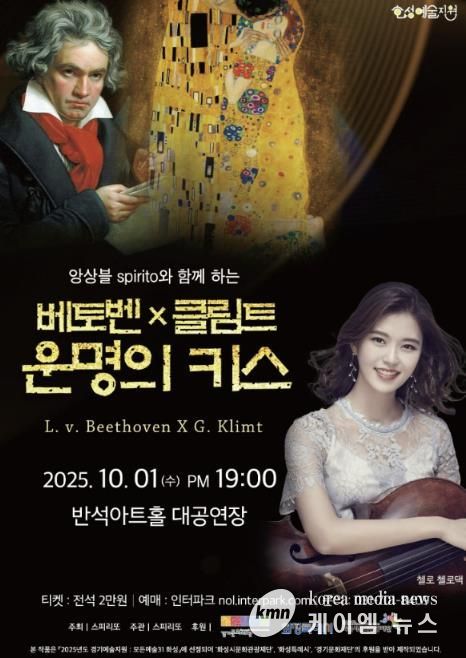 (케이엠뉴스) 화성특례시와 (재)화성시문화관광재단이 추진하는‘2025년 경기예술지원 모든예술31 화성’ 공모사업의 선정작 'Spirito 앙상블과 함께하는 베토벤x클림트, 운명의 키스'가 10월 1일 오후 7시에 동탄복합문화센터 반석아트홀에서 개최된다.
