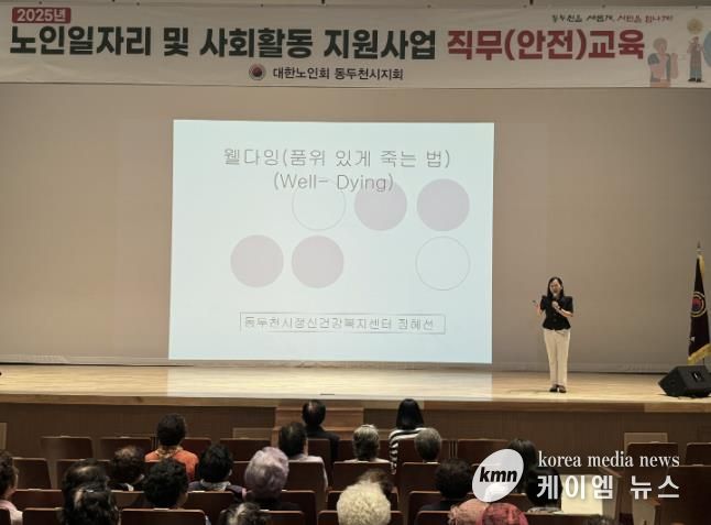 (케이엠뉴스) 동두천시정신건강복지센터는 9월 19일 동두천시민회관에서 노인 일자리 및 사회활동 지원사업 참여 어르신을 대상으로 ‘웰다잉(Well-dying)’을 주제로 한 성인 정신건강 교육을 진행했다.