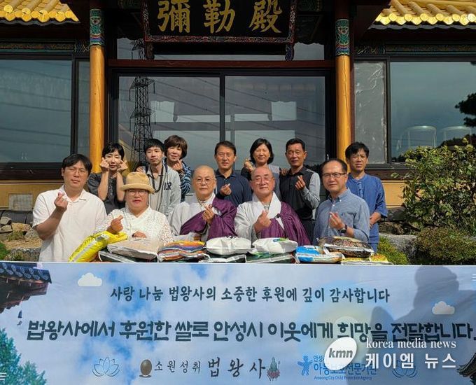 (케이엠뉴스) 안성시 보개면에 위치한 법왕사는 2025년 9월 22일(월) 쌀 1,080kg(10kg 108포대)를 안성시아동보호전문기관에 기탁했다.