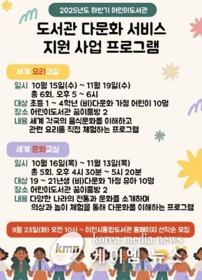 (케이엠뉴스) 이천시 어린이도서관이 오는 10월부터 문화체육관광부 주관 공모사업인 ‘2025년 도서관 다문화 서비스 지원사업’에 선정돼 프로그램 운영에 나선다.
