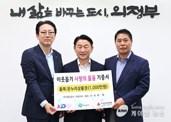 (케이엠뉴스) 의정부시는 9월 23일 KD운송그룹(대표 허상준)이 다가오는 추석 명절을 맞아 관내 저소득 가구를 위해 온누리상품권을 기탁했다고 밝혔다.