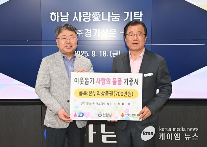 (케이엠뉴스) 지난 19일, ㈜경기상운은 하남 사랑愛나눔으로 성품(온누리상품권 700만원)을 기탁하며 기탁식을 가졌다.