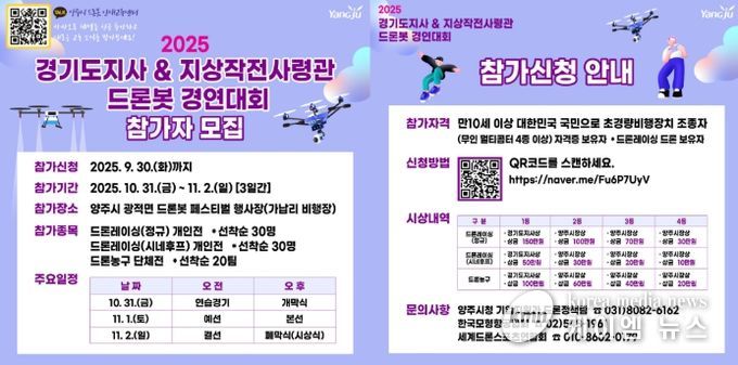 (케이엠뉴스) 양주시가 '2025 경기도지사ㆍ지상작전사령관배 드론봇 경연대회'에 참가할 일반부 선수를 오는 9월 30일까지 모집한다.