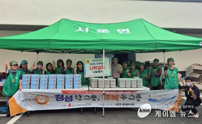(케이엠뉴스) 지난 23일 서운면 새마을부녀회 회원 26여 명이 서운면 행정복지센터에서 관내 취약계층을 위한 반찬 나눔 봉사활동을 실시했다.