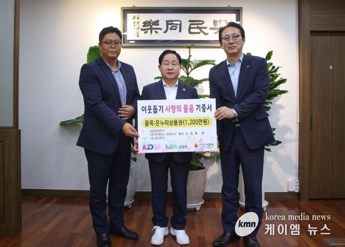 (케이엠뉴스) 남양주시는 24일 KD운송그룹이 추석 명절을 맞아 온누리상품권 1만 원권 1천200매(1천2백만 원 상당)를 남양주시복지재단에 기부했다고 밝혔다.