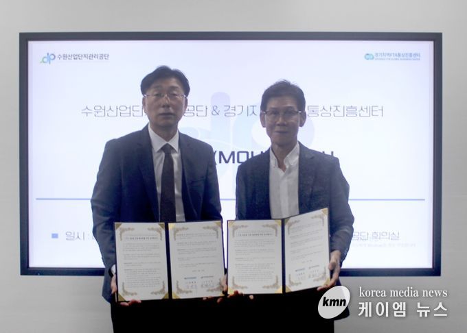 (케이엠뉴스) 수원산업단지관리공단은 경기지역FTA통상진흥센터와 24일 ‘수원시 기업 수출 지원을 위한 FTA·수출 업무 협약(MOU)’을 체결했다.