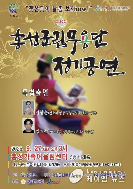 (케이엠뉴스) 홍주문화관광재단은 오는 27일 오후 3시 홍성가족어울림센터에서 홍성군립무용단 제20회 정기공연 ‘꽃 본 듯이 날 좀 보show’를 개최한다고 밝혔다.