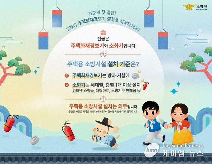 이번 캠페인은 화재 발생 시 초기 대응의 중요성을 알리고, 주택 화재로부터 가족의 안전을 지키기 위해 마련됐다. 주택용 소방시설은 소화기와 단독경보형 감지기를 말하며, 설치만으로도 화재 피해를 크게 줄일 수 있는‘가장 효과적인 안전 선물’로 꼽힌다.