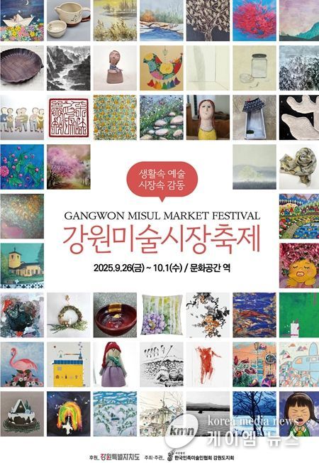 (케이엠뉴스) 강원특별자치도는 (사)한국민족미술인협회 강원지회와 함께 '2025년 강원미술시장축제'를 9월 26일부터 10월 1일까지 6일간 남춘천역 1층 문화공간에서 개최한다.
