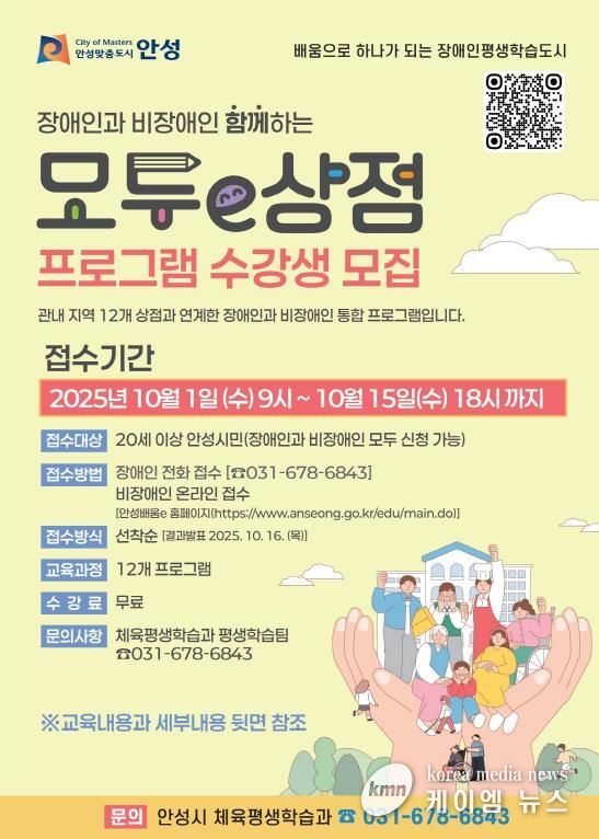 (케이엠뉴스) 안성시는 장애인과 비장애인이 함께 참여할 수 있는 통합 평생학습 프로그램 '모두e상점'을 운영하며, 이에 참여할 수강생을 모집한다.