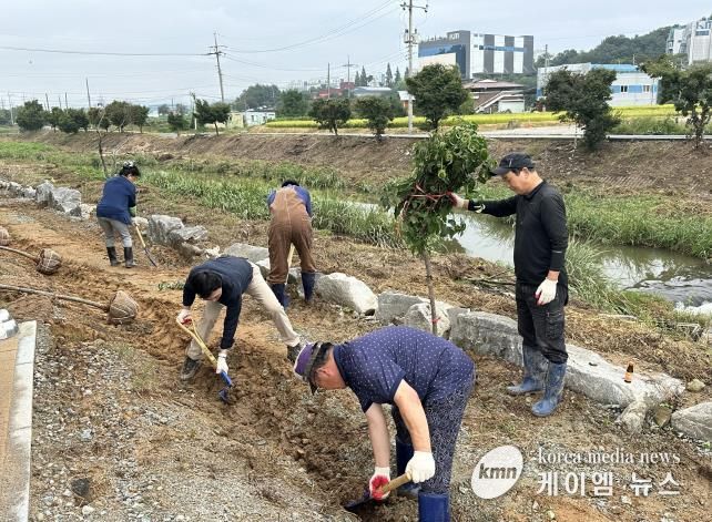 (케이엠뉴스) 지난 9월 25일 미양면 영청동 쌈지공원(마산리 622-1)에서 주민자치위원회 위원 6명이 참여한 가운데 공원 환경정비와 수국·나무 식재 활동을 진행했다.