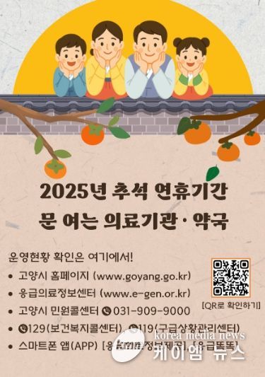 (케이엠뉴스) 고양특례시는 다가오는 추석 연휴(10월 3일~9일, 7일간) 동안 발생할 수 있는 진료 공백을 최소화하기 위해 관내 의료기관 및 약국과 협력하여 응급진료체계를 운영한다고 밝혔다.
