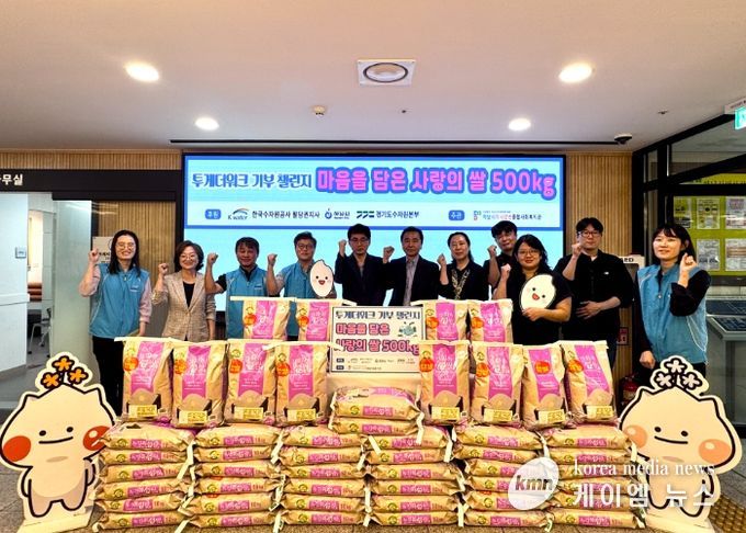 (케이엠뉴스) 한국수자원공사 팔당권지사는 지난 24일 민족의 대명절 추석을 맞아 사회공헌사업의 일환으로 ‘투게더워크’ 기부 챌린지를 통해 모인 성금으로 하남시미사강변종합사회복지관에 200만원 상당의 ‘사랑의 쌀’ 500kg을 전달했다.