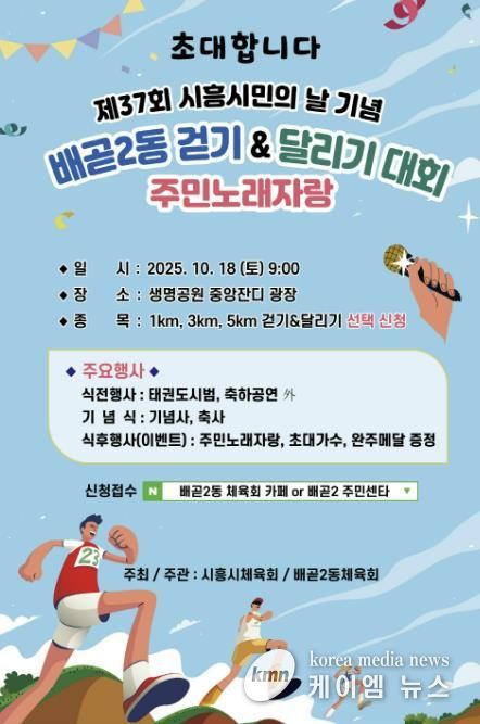 신제승 배곧2동장은 “걷기·달리기 대회와 주민 노래자랑이 주민 건강과 화합을 위한 축제의 장이 되길 기대한다”라며 “많은 관심과 참여를 부탁드린다”라고 밝혔다.