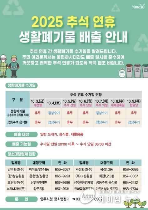 (케이엠뉴스) 양주시가 다가오는 추석 연휴 동안 ‘2025년 추석 연휴 생활폐기물 관리 대책’을 추진한다.