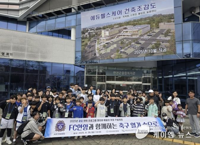 (케이엠뉴스) 연천군청소년육성재단(청소년문화의집)은 지난 28일 FC안양 프로축구단과 함께하는 주말체험 프로그램 ‘창의와 배움의 여정 4차 활동’을 성황리에 개최했다. 이번 행사는 관내 청소년 63명과 성인 9명, 인솔자 6명 등 총 85명이 참여해 축구 경기 관람과 체험활동을 즐기며 활기찬 하루를 보냈다.