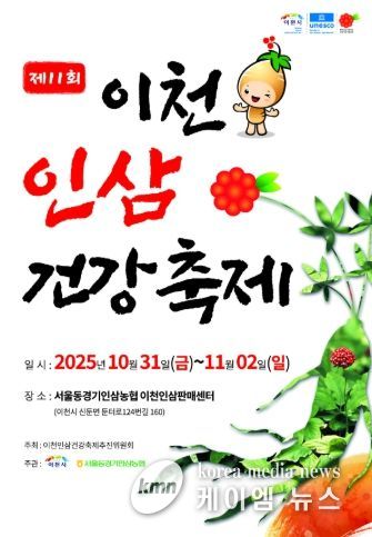 (케이엠뉴스) 올해로 11회째를 맞이하는 ‘이천인삼축제’가 오는 10월 31일부터 11월 2일까지 3일간 이천인삼판매센터(신둔면 둔터로124번길 160) 일원에서 개최된다.
