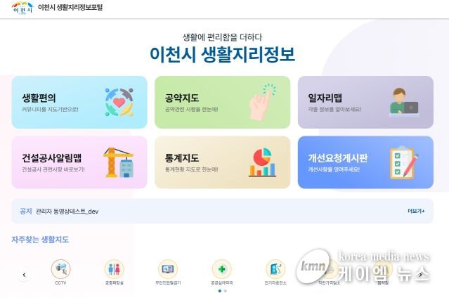 (케이엠뉴스) 이천시는 시민 생활 편의를 한층 높이기 위해 생활지리정보 포털 고도화 사업을 마치고, 정식 서비스를 9월 29일부터 개시했다고 밝혔다.
