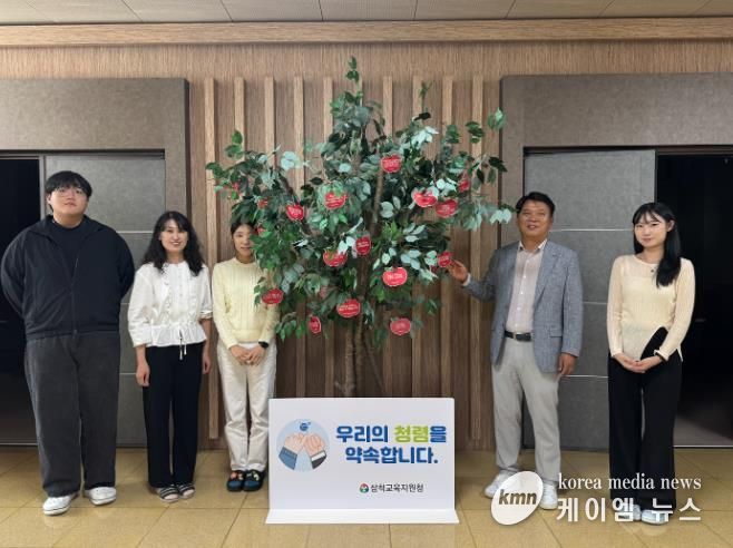 (케이엠뉴스) 삼척교육지원청은 9월 29일 오후 3시 삼척교육지원청 1층 로비에서 삼척 관내 학교장이 직접 작성한 청렴 메시지를 열매로 만들어 ‘청렴 나무’에 전시하는 ‘청렴 나무, 약속 열매 맺기’ 행사를 진행했다.