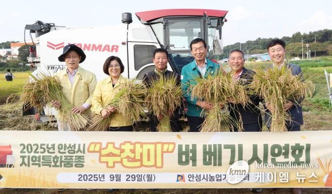 (케이엠뉴스) 안성시농업기술센터는 9월 29일, 안성시 지역특화 벼 품종인 ‘수찬미’의 벼 베기 행사를 성황리에 개최했다. 이번 행사는 2025년부터 본격 보급된 ‘수찬미’를 널리 알리고, 기존 외래품종 ‘추청’을 대체할 대안으로 홍보하기 위해 마련됐다.