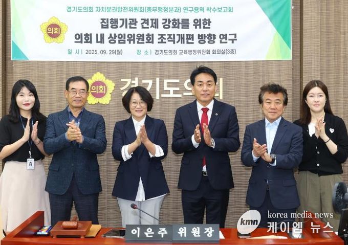 (케이엠뉴스) 경기도의회 자치분권발전위원회 총무행정분과는 9월 29일 도의회 교육행정위원회 회의실에서 '집행기관 견제 강화를 위한 의회 내 상임위원회 조직개편 방향 연구' 착수보고회를 개최했다. 이번 연구는 향후 의원 정수 확대에 따라 예상되는 의정 환경 변화에 대응하고, 특히 교육분야 상임위 증설의 필요성을 검토하기 위해 추진됐다.
