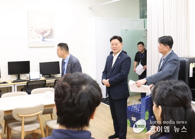 (케이엠뉴스) 경기도의회 더불어민주당 최종현 대표의원(수원7)이 30일 추석을 앞두고 백현종 국민의힘 대표의원과 함께 의회내 현업부서 직원들을 격려했다.