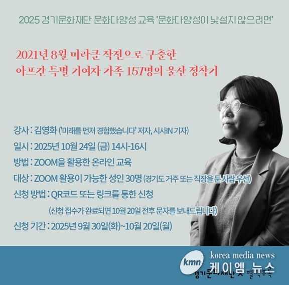 (케이엠뉴스) 다가오는 10월 24일, 경기문화재단은 문화다양성 가치를 이해하고 관련 사례를 탐구하기 위한 문화다양성 온라인 교육 〈미래를 먼저 경험했습니다〉를 실시한다.