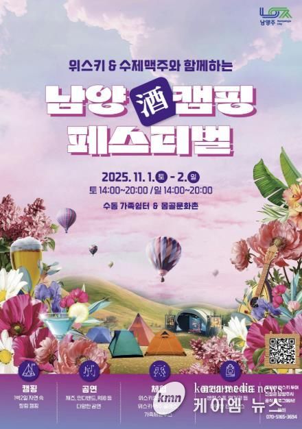 (케이엠뉴스) 남양주시는 오는 11월 1일부터 2일까지 수동 가족쉼터와 몽골문화촌 일원에서 ‘남양酒 캠핑 페스티벌’을 개최한다.